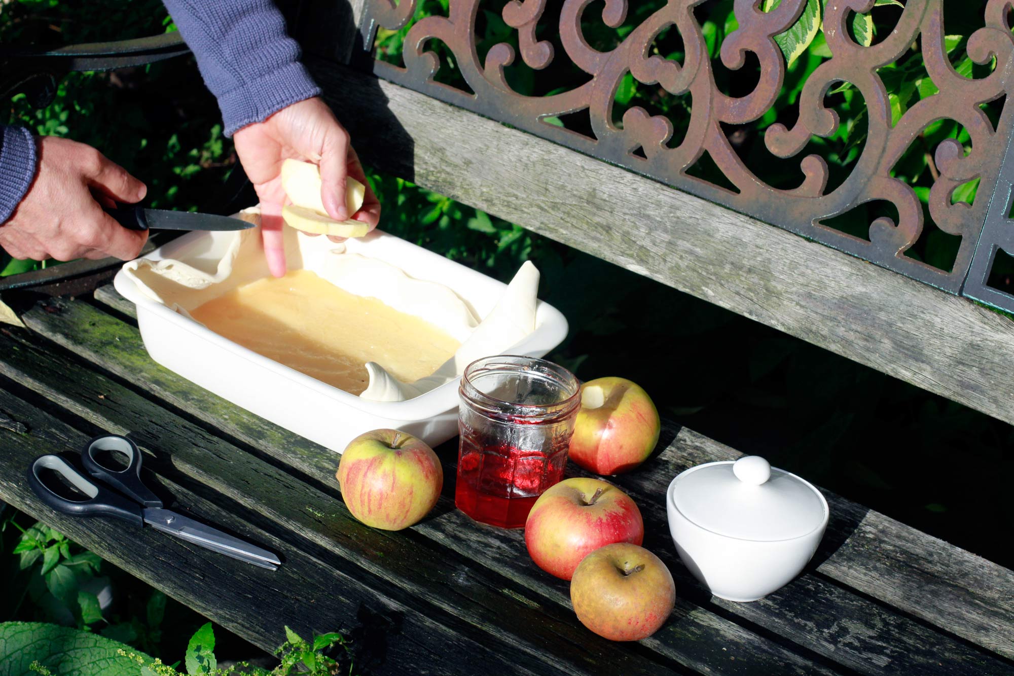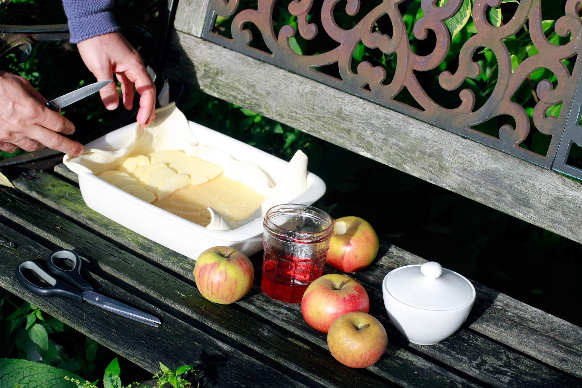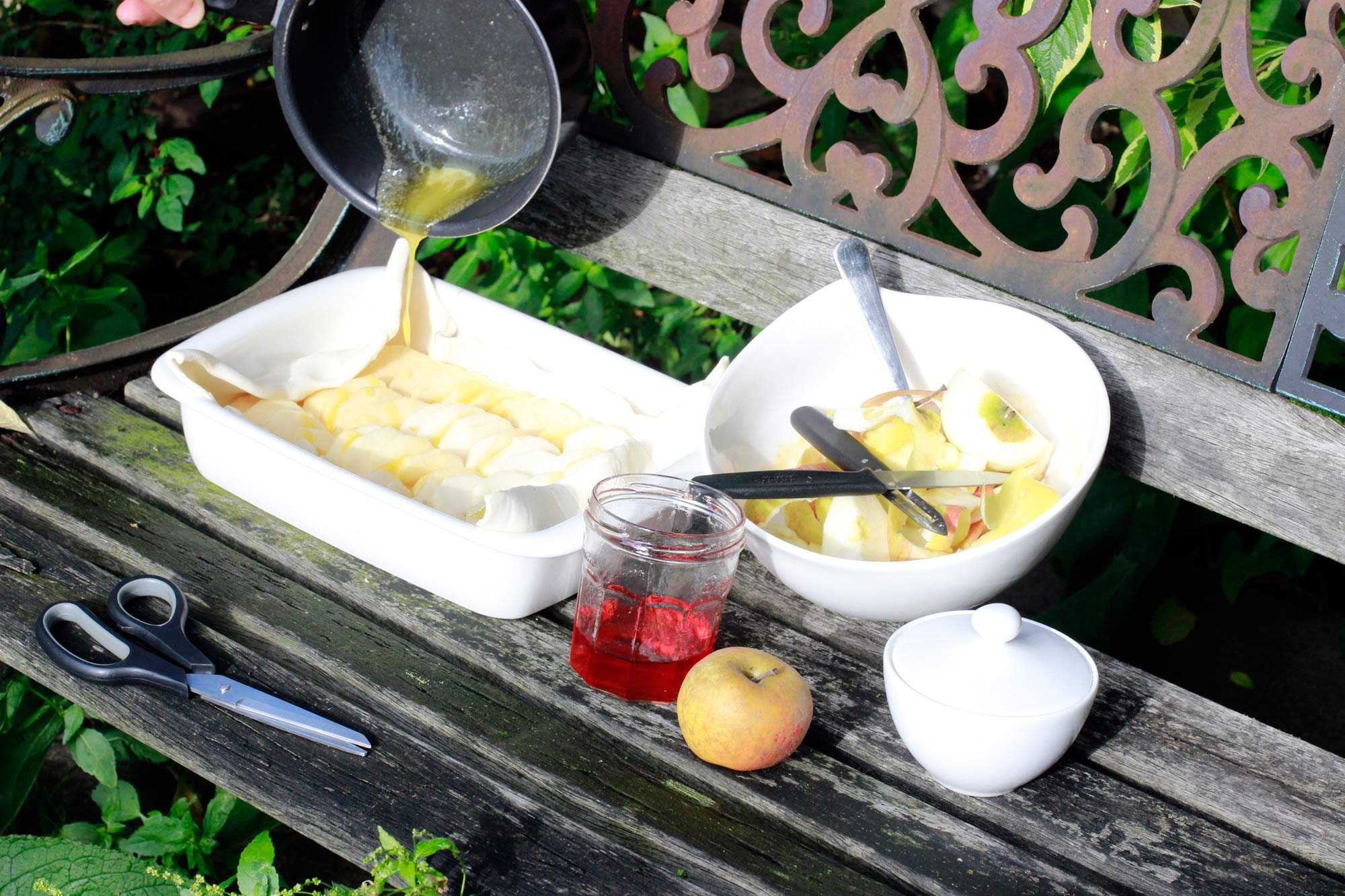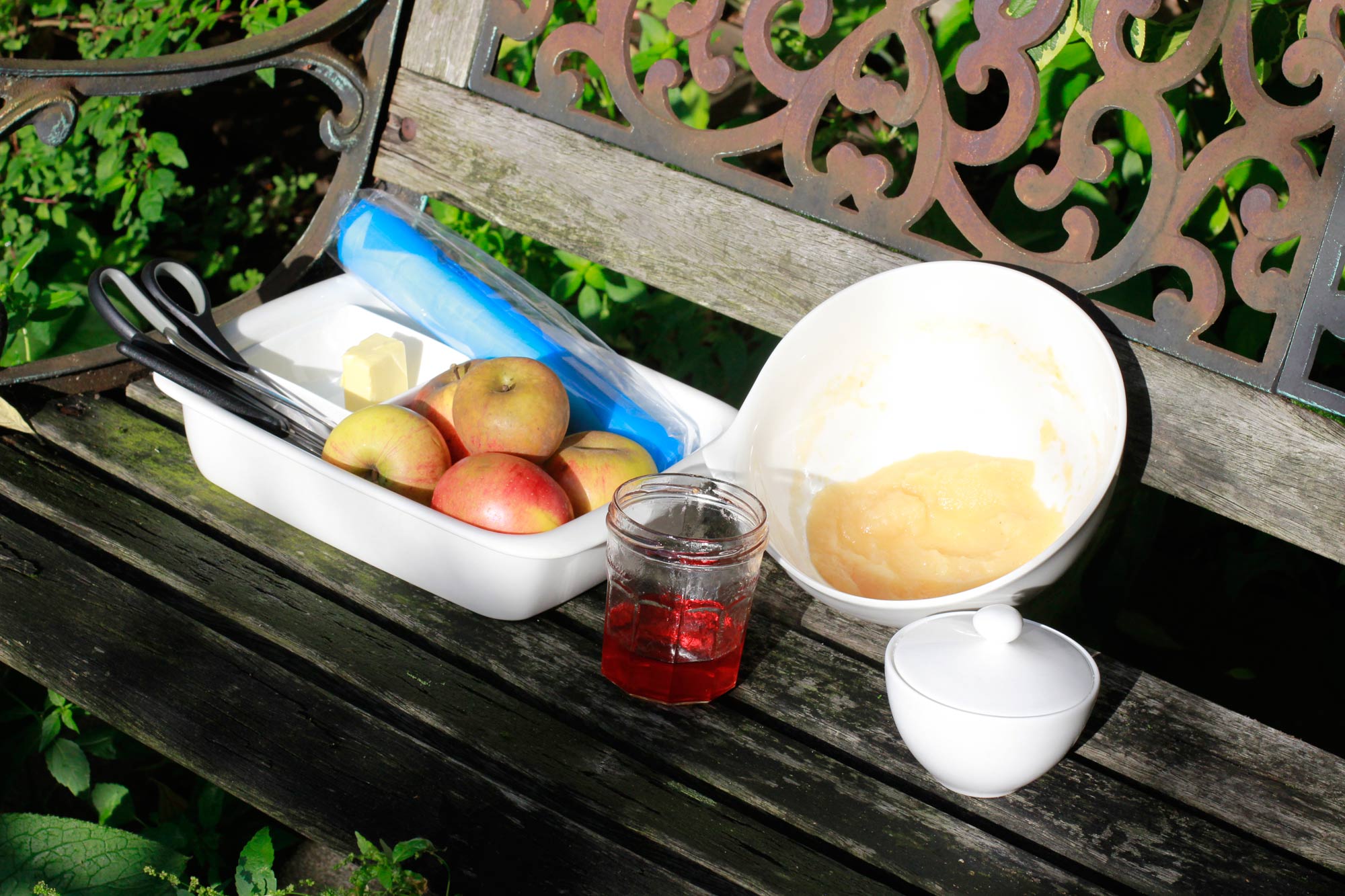 – I didn’t know how many apples I would actually need, so I took a few from my stock of various varieties picked in Wimbledon. In the end I used a bit more than the three largest apples on the picture above… and ate the rest of the fourth.