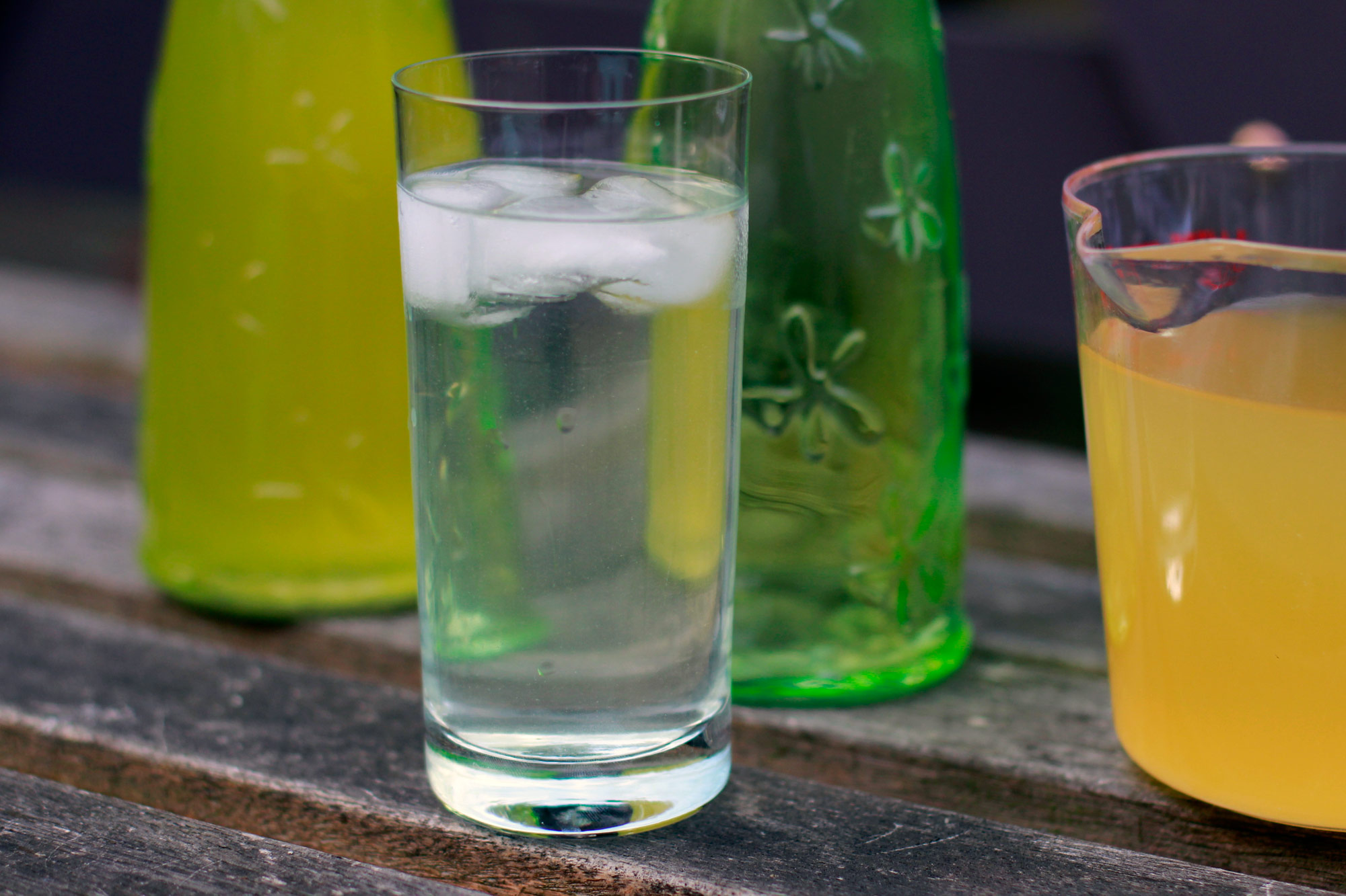 People also liked the shape and colours of the bottle and its content, yellow and green contrasting with the transparency of the drink and the ice cubes in the glasses, on our hosts’ white painted iron garden table.
