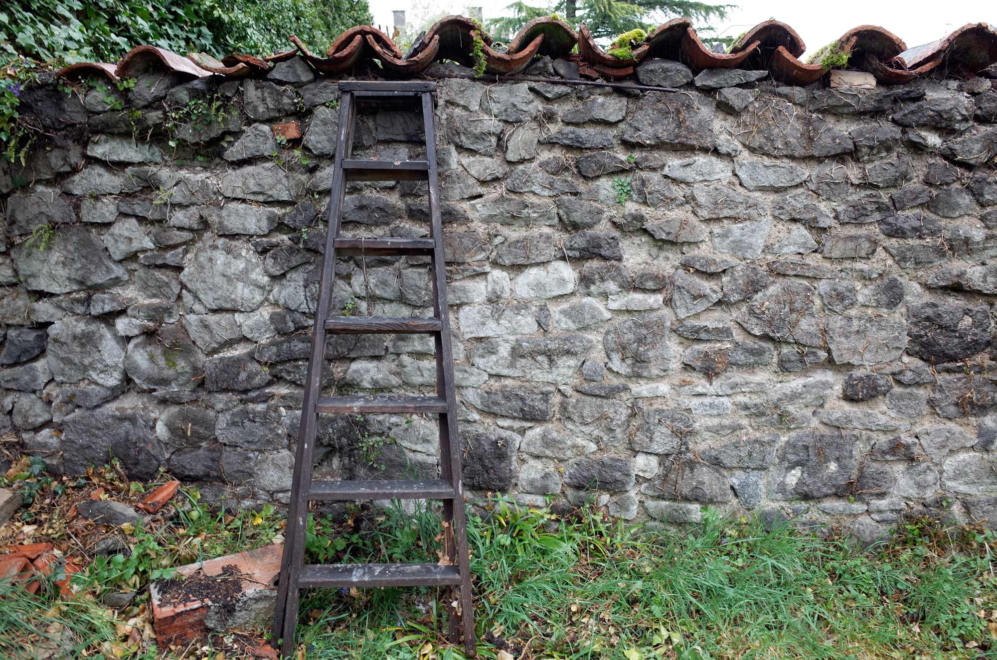 We used to pick lily of the valley at the end of May, near the trees against the wall, left to the ladder. I used the old ladder to remove ivy from the tiles.