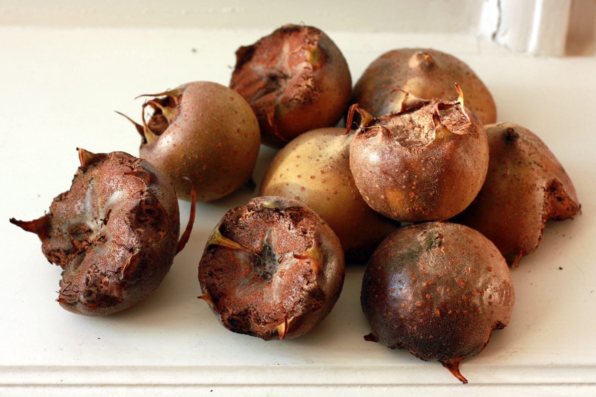 We agreed, and walked a few hundred yards into the orchard to pick the four kilos of medlars I needed.