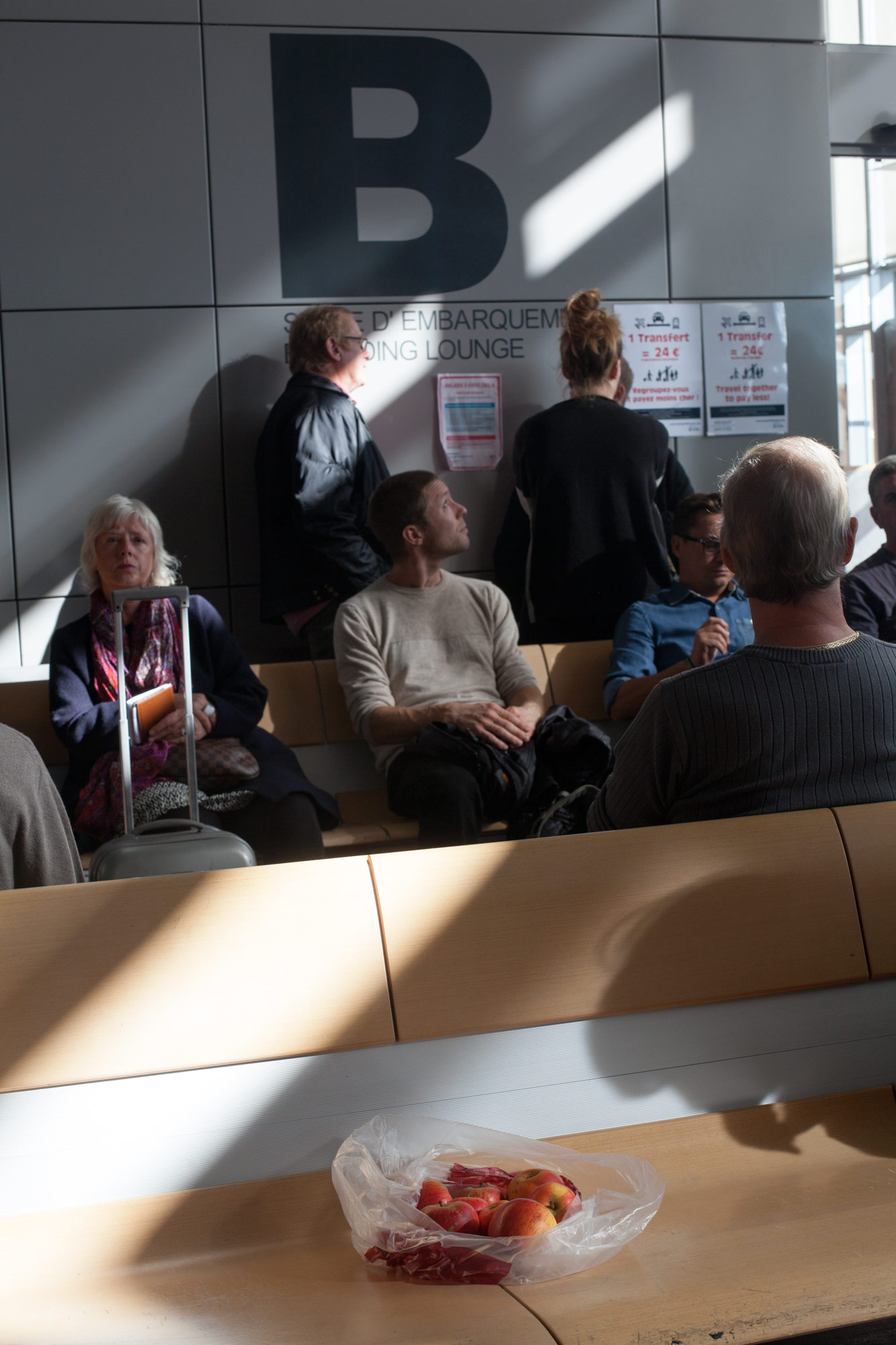 A kilo of apples picked on 30 September in Saint Simon. Connecting France to the UK, a modern multinational family to the fruit of a traditional garden, and a friend to his memories of a visit to “Le jardin de Saint Simon” twenty years ago. Photo Limoges airport, France.