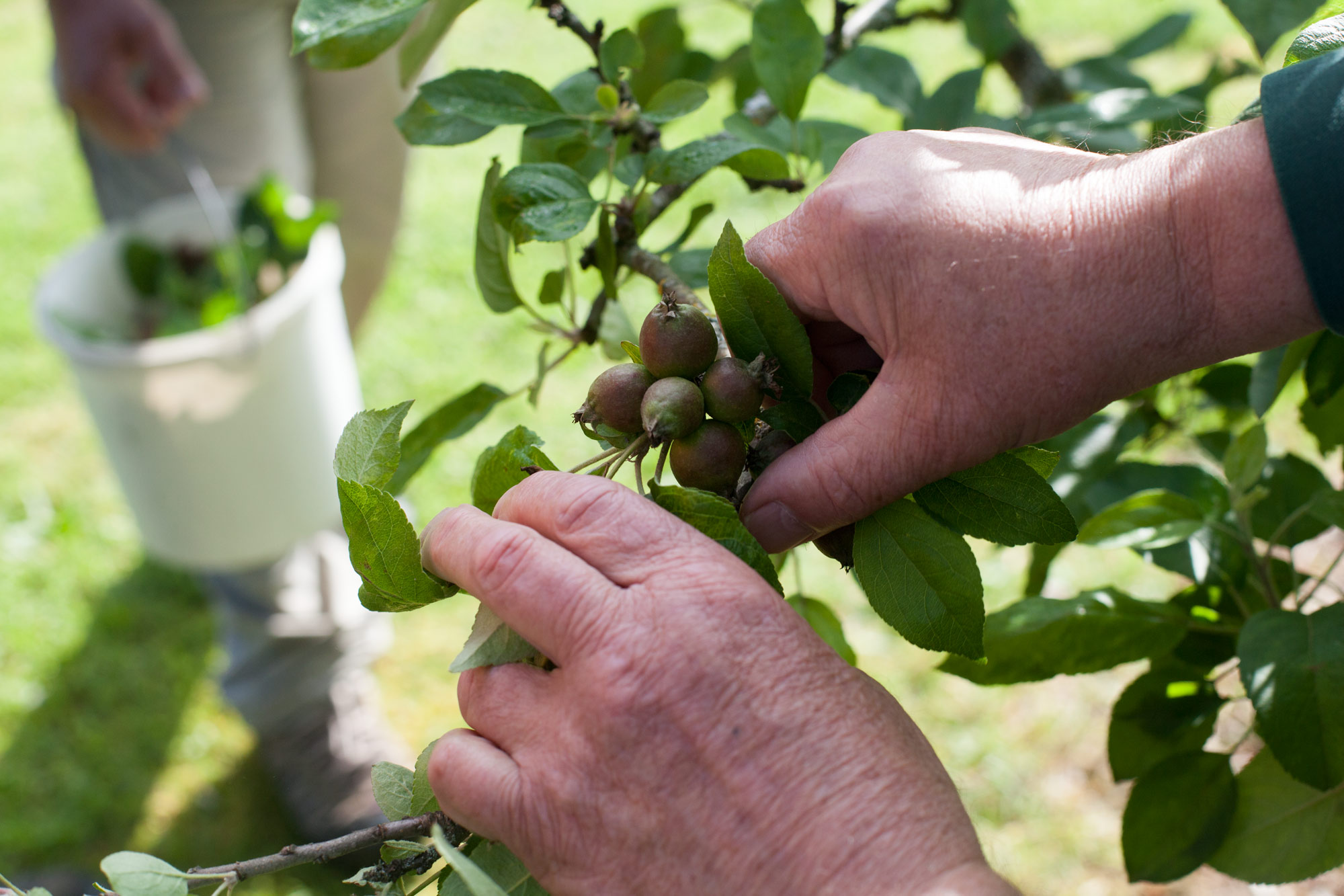 The aim of “thinning”, which means removing excess fruit from trees, is to optimize fructification. It is carried out on pome fruit such as apples and pears, on younger and more mature trees.