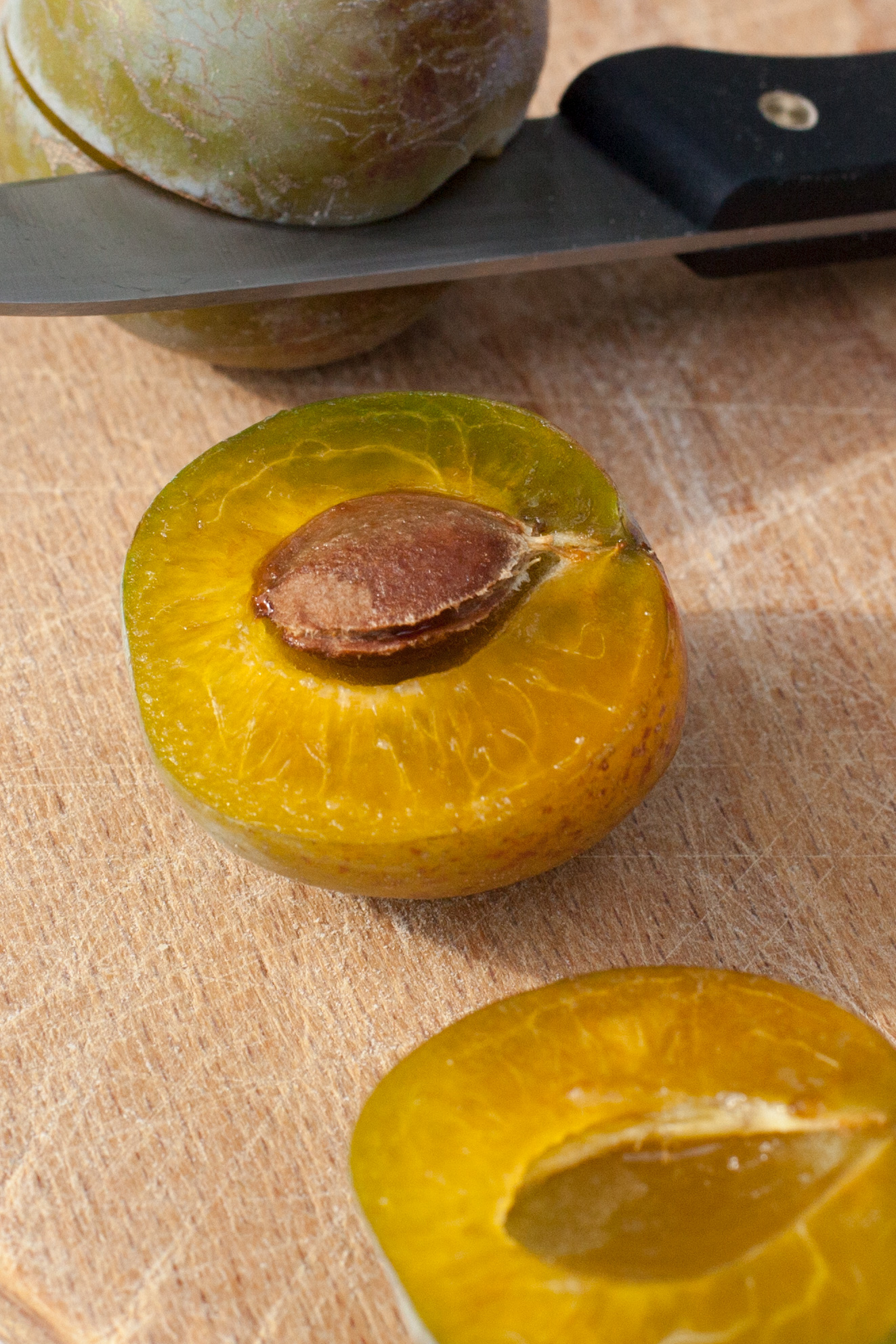 Another trick: when testing plums, choose one that looks average. Or two, one average and one that looks less ripe. The ripest ones will always be easy to stone, even if I find it more comfortable to stone slightly firmer, rather than softer, fruit.