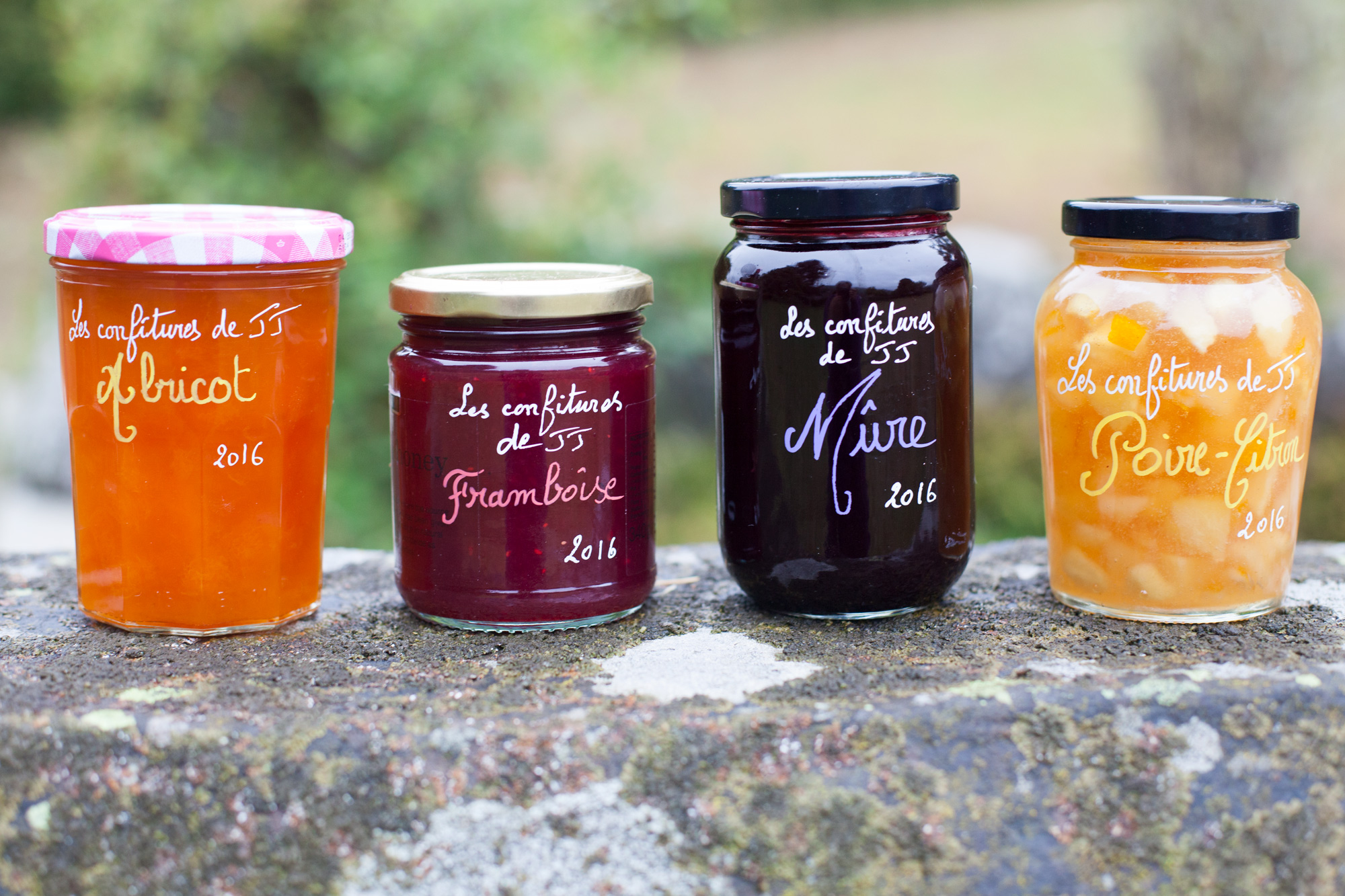 She, who named my jams “Les confitures de JJ” (JJ’s jams) with such warmth in her voice this summer, inspired me and I decided to sign the jars this way. May them bring joy wherever they go.
