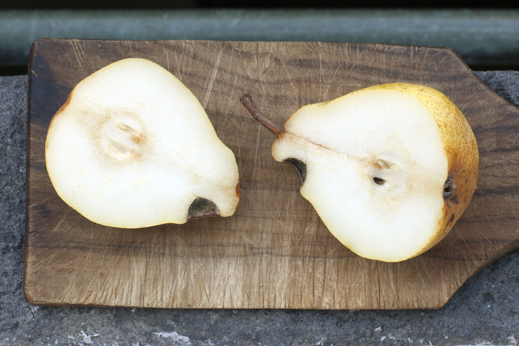 The last question was the easiest to answer: at least a week passed between the first and the last pears to become yellowish. They didn’t become fully yellow on the tree. They would fall before, and in any case we decided to harvest them before a storm, on 13 September. We then waited for a few days for the pears to be ready to eat.