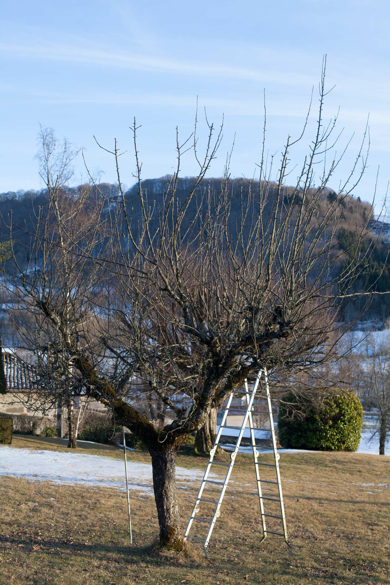 I cut scions a the top of this not-too-high first apple tree in our Saint Simon garden (scion: ‘a young shoot or twig of a plant, especially one cut for grafting or rooting’, source Oxford Dictionaries). The tree is healthy, so the scions could be donated for use in other gardens. Photo 21 January, France.