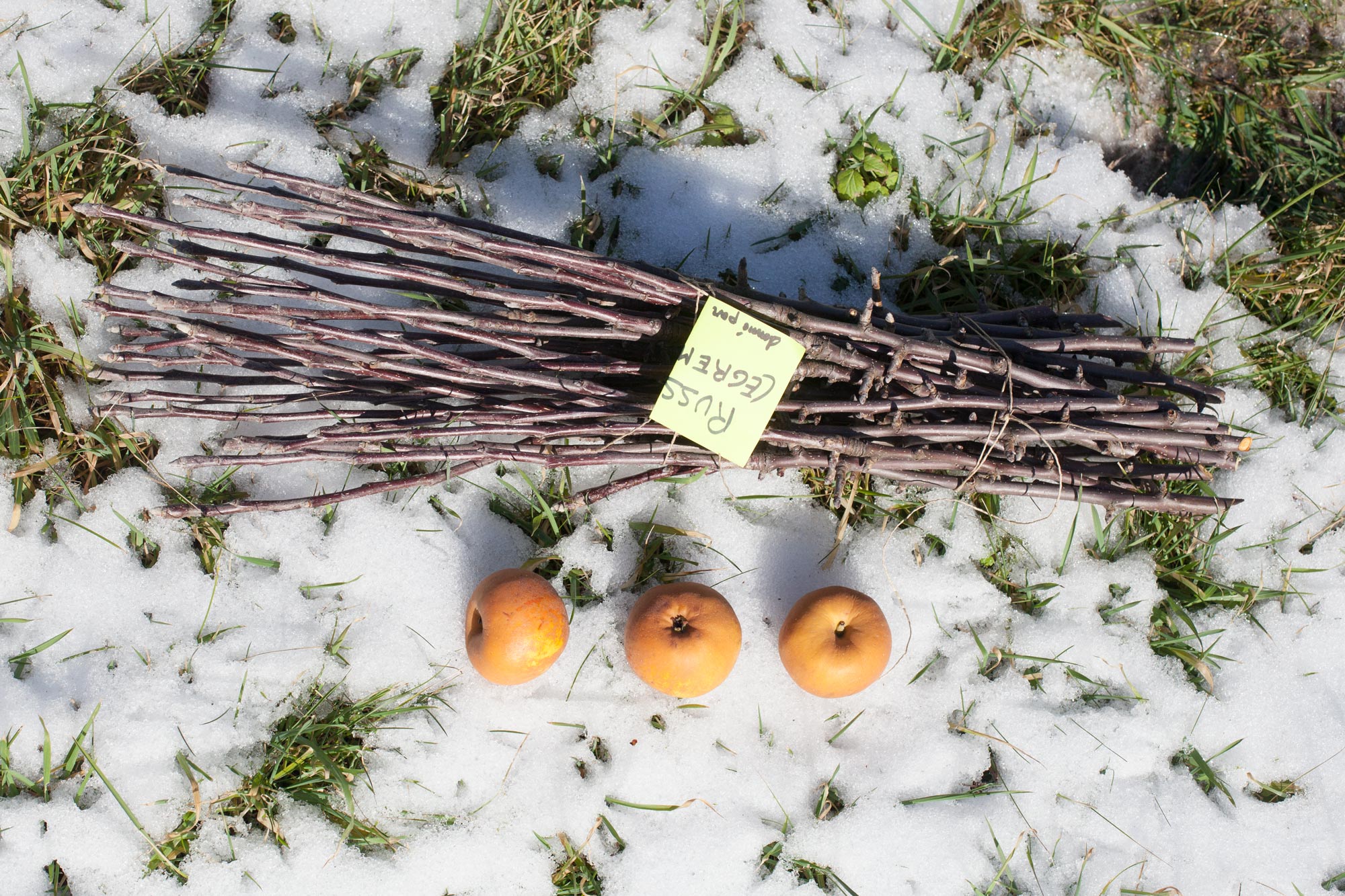 I also donated scions from another tree, of a cultivar which is part of the russet family. As I couldn’t identify the actual cultivar name, and still had some fruit, I gave three apples to help the ‘Croqueurs de Pommes’ to find out. If they do, they will add the scions to the other cultivars for the exchange day. Otherwise, they will not include them and most of them will be lost: I would have failed to participate fully in the sharing.