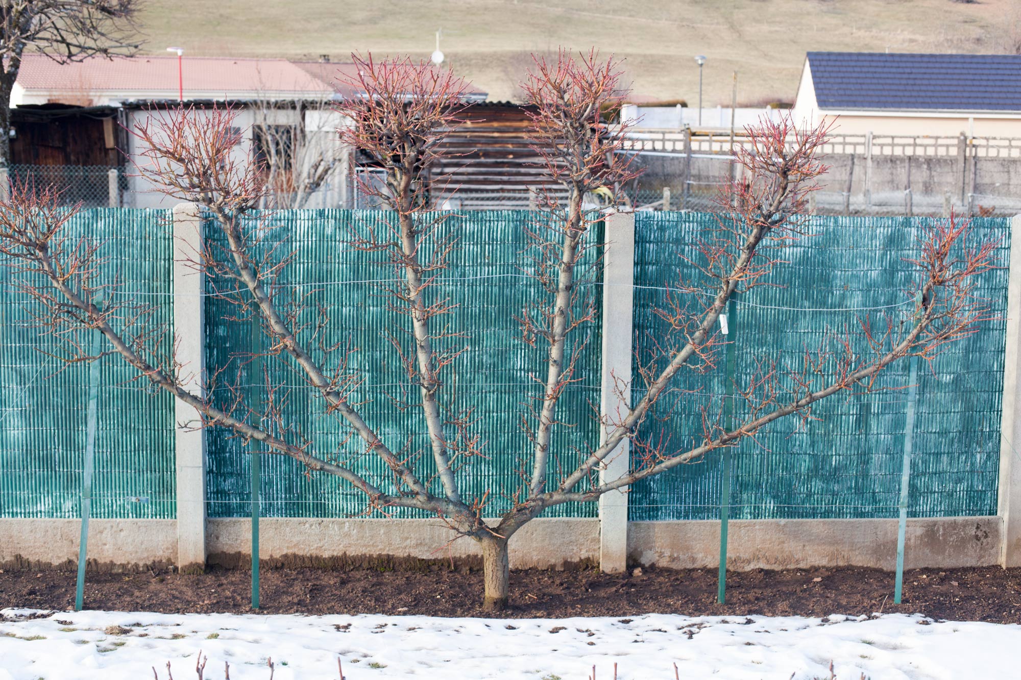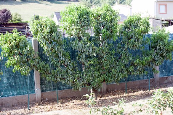 The two draft trees below, of modern cultivars, were planted in 2017. They should reach 1.50 meter in height and produce from seven to ten kilos of fruit each when adult.