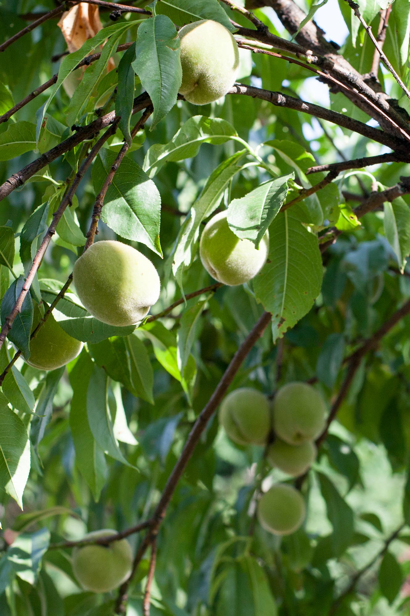 The following peaches are smaller for several reasons: the variety, and the exceptionally hot and dry weather conditions that prevented them from growing as normal. Claude said that his trees hadn’t grown since June.