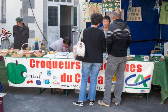 Visitors often ask the ‘Croqueurs de Pommes’ about cultivar names, as the association is dedicated to the preservation of old fruit varieties, in particular apples, and therefore know well about what’s growing in the area. Photo 2017 organic fair, 3 September 2017, Aurillac, France.