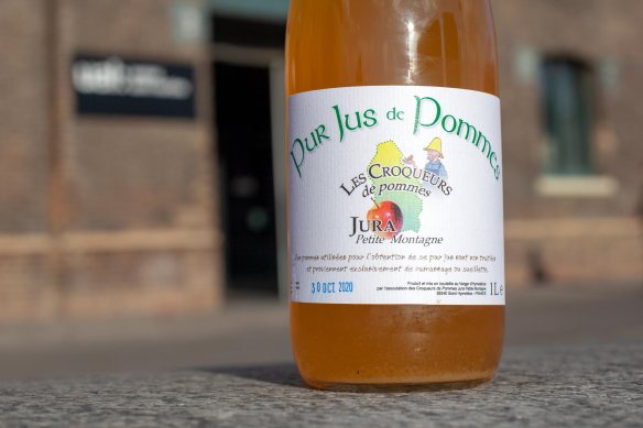A bottle of the apple juice I tasted on Les Croqueurs de pommes Jura – Petite Montagne stall. I will remember the nutmeg tip. Photo 31 October, London, UK.