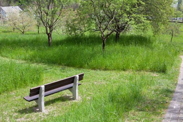 As mentioned in my 30 April article, we were advised to visit Prangin’s kitchen garden and temporary exhibition ‘A table : what does Switzerland eat?’. On the day of our visit, although very interested in Swiss culinary traditions, we focused on the kitchen garden because of time constraints. We found Prangins very promising right from the start. On the way up to the castle from the car park on the South East of the estate, bands of mown grass allowed to walk among the trees of a meadow orchard, or rather a ‘meadow-cum-orchard’, in the castle’s website words, as the fruit trees were not covering the whole surface. The field around them was growing like natural grassland. There were beehives too. As explained to visitors on an information board, the grass provides nectar and pollen to the bees and the bees pollinate the trees. The curators of his place have created a naturally flourishing biodiverse environment.