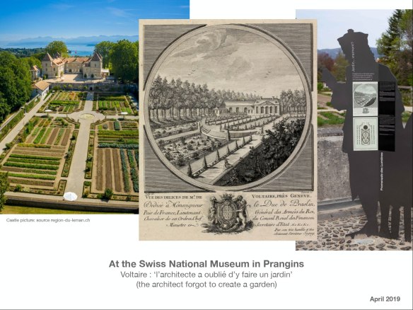 Je suis revenu à Voltaire, offrant mon interprétation de cette remarque qu’il fit après un séjour de quatre mois au château de Prangins en 1757, surprenante quand on connaît le lieu et son histoire.
