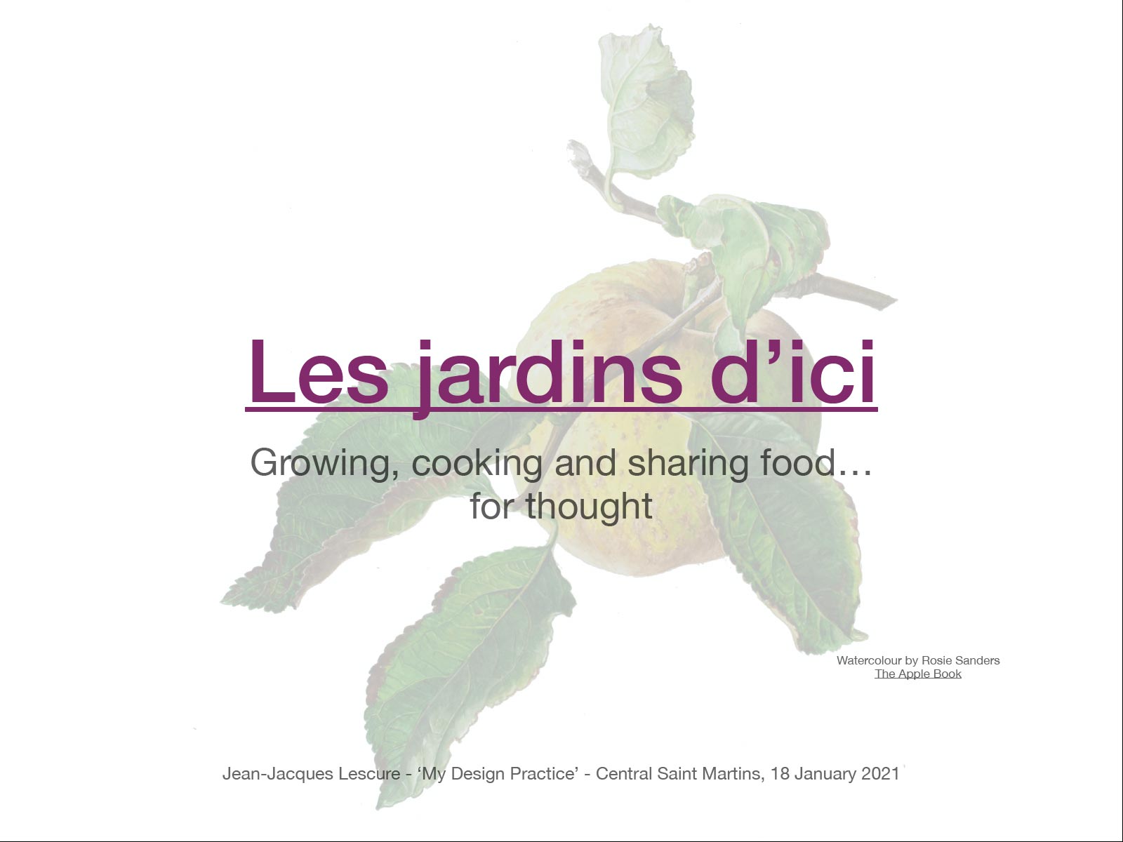 J’ai parlé vingt minutes de jardinage à cent cinquante étudiants en design graphique de Central Saint Martins, Université des Arts de Londres. Voici les planches que j’ai présentées à ces jeunes créatifs le 18 janvier.