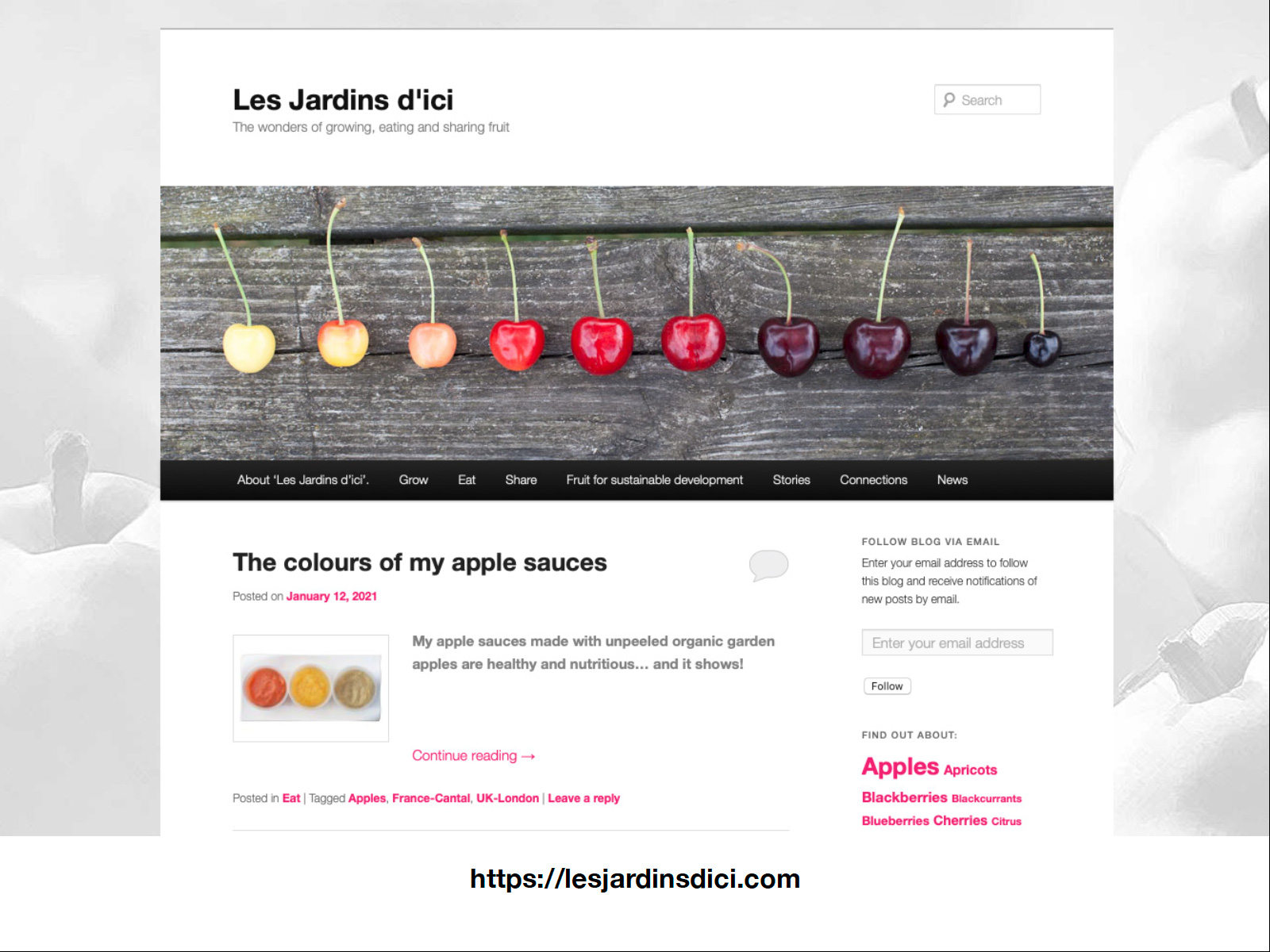 Ensuite, j’ai parlé de la genèse de mes activités. J’ai expliqué comment, après mon mastère en design à Central Saint Martins et la crise financière de 2008, j’ai revu ma vision du monde et, comme une sorte de Candide contemporain, j’ai choisi de “cultiver mon jardin”. (Cliquer sur l’image pour accéder au premier article du blog, ‘Hello fruit lovers’, publié en septembre 2013. Chacune des planches suivantes contient l’extrait d’un article et un lien vers l’article complet).