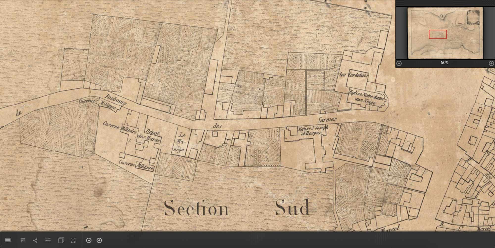 Vue d’ensemble du plan Martin. Il y avait des jardins nourriciers partout, y compris le mien qui existe toujours aujourd’hui. Cliquer sur l’image pour explorer ce plan en détail. Copie d’écran 8 juin 2023.