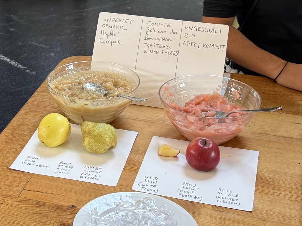 Membre de l’équipe des Croqueurs de pommes® présents à cette manifestation, j’ai répondu à cet appel en proposant de me joindre à une initiative de Fructus qui consistait à faire travailler des étudiants en disciplines créatives de la Basel Academy of Art and Design. Ces étudiants ont préparé des produits à base de fruits sucrés et salés selon des recettes locales qu’ils ont ensuite offert à déguster aux visiteurs.