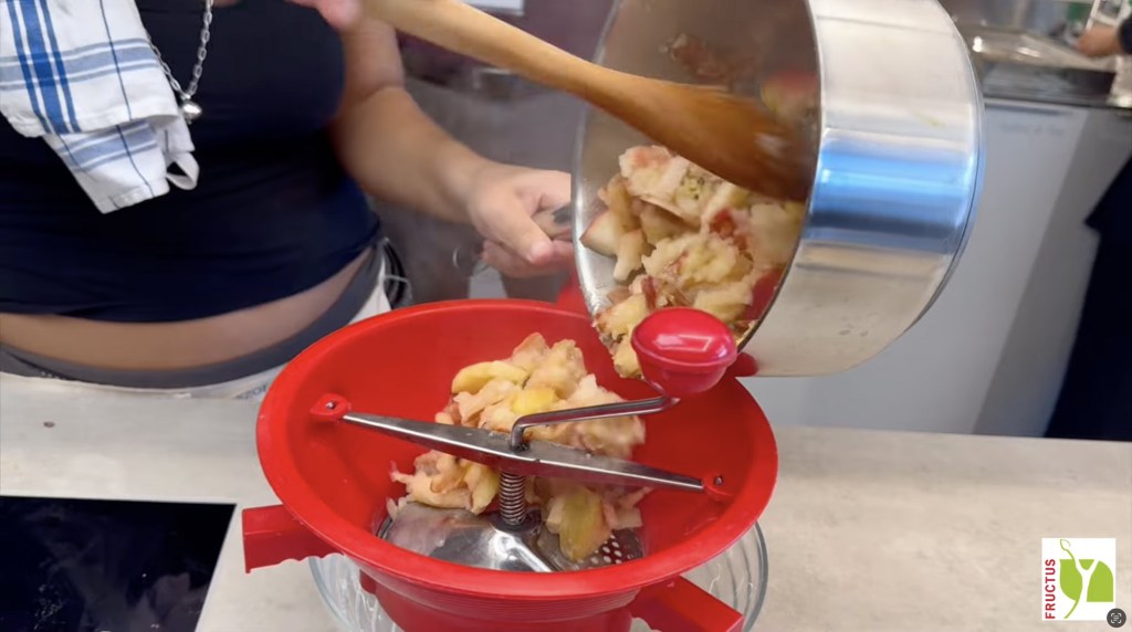 J’ai préparé avec eux de la compote selon ma recette favorite. On ne pèle pas les pommes pour garder le maximum de nutriments et s’assurer de la richesse des arômes. On passe les morceaux coupés grossièrement puis cuits dans une casserole avec un peu d’eau au moulin à légumes. Les peaux et les pépins restent dans le moulin. On obtient ainsi en trois coups de cuillère à pot une compote lisse prête à déguster dès qu’elle a refroidi.