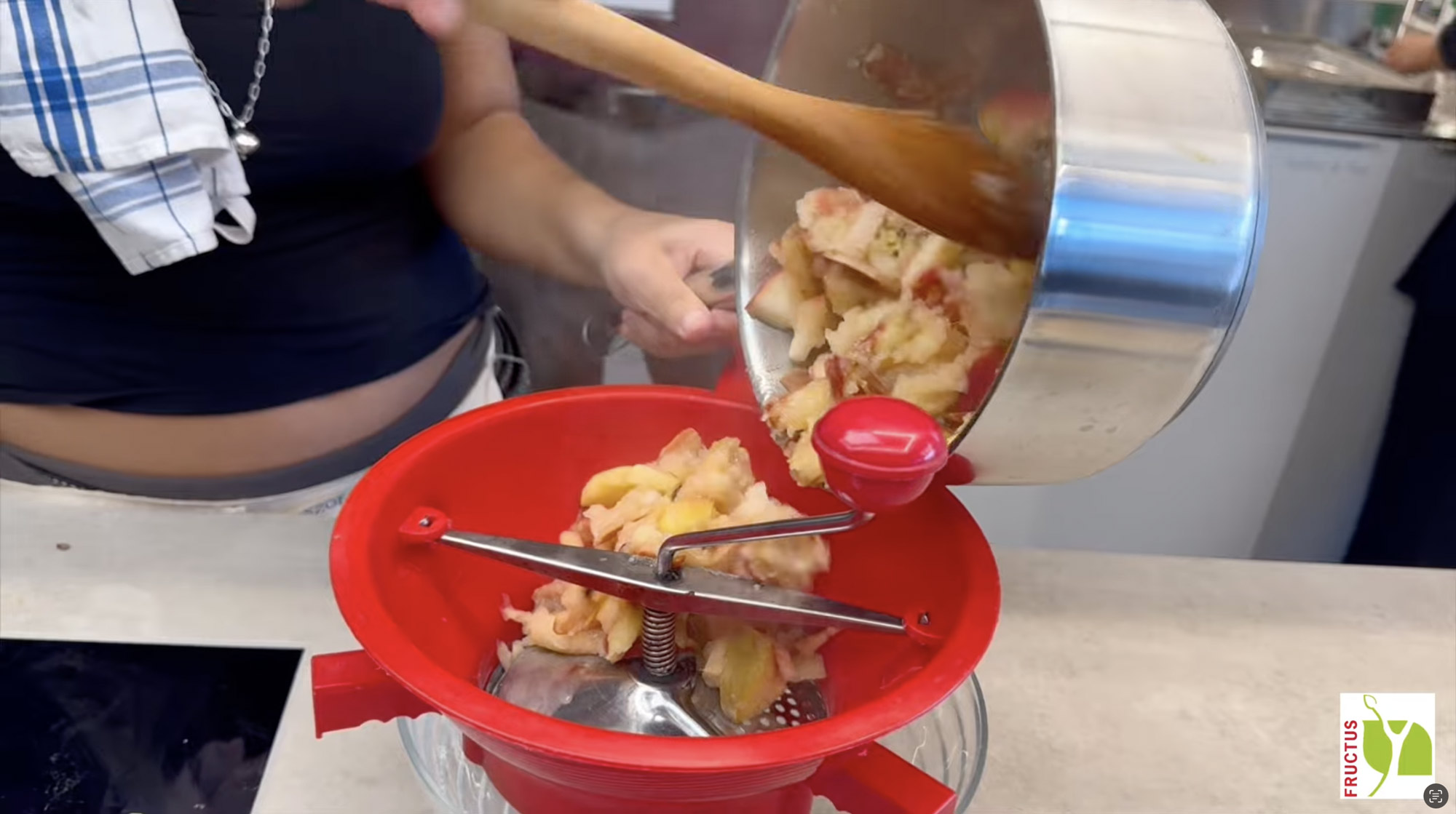 Deux compotes ont été préparées samedi, une de couleur rose faite avec des pommes à la peau rouge et une de couleur jaune faite avec des pommes et des poires à la peau jaune. L’objectif était d’engager une conversation avec les visiteurs sur la méthode de préparation et sur l’incidence de la peau sur le produit final. C’était également l’occasion de rappeler que nos fruits de jardin, non traités, sont idéaux pour réaliser cette recette gourmande et nourrissante.