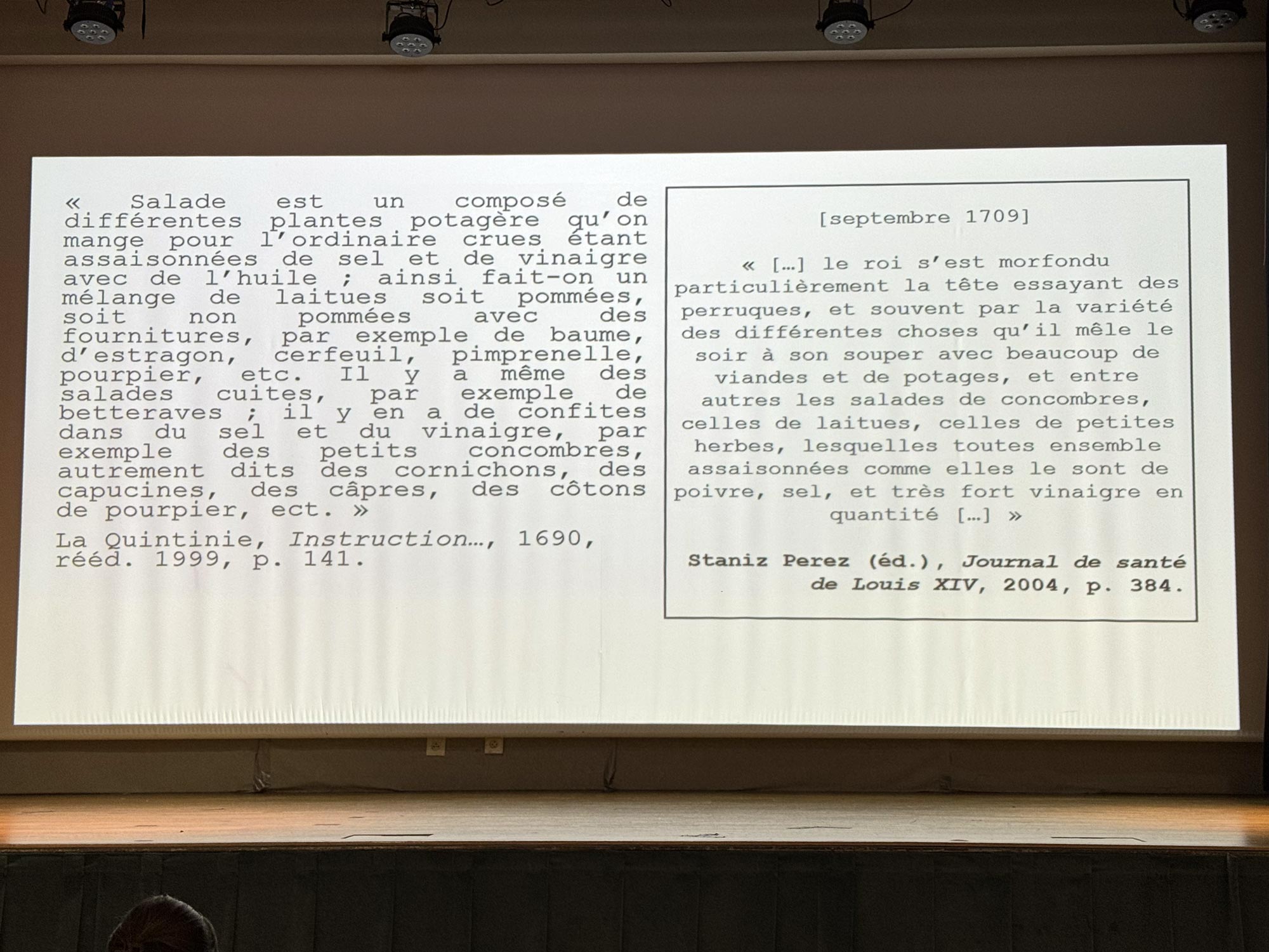 Louis XIV who had health issues ate salads, as mentioned in his health diary (see picture below). Very modern I thought. A good story to refer to when advocating for healthy food?